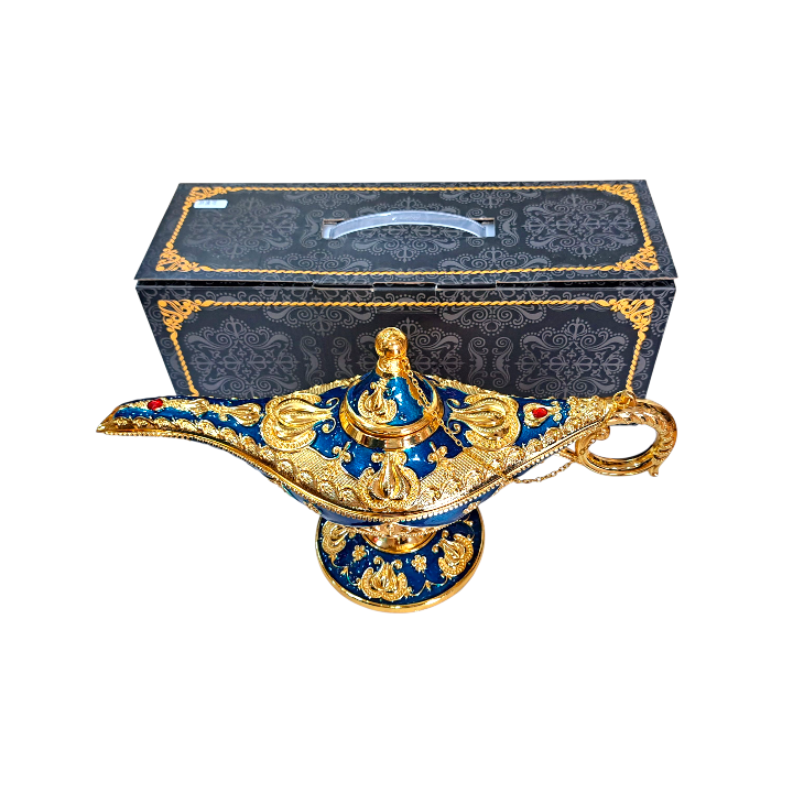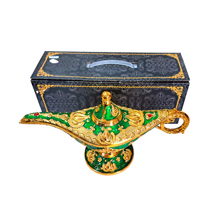 lámpara de Aladino verde y dorada decorativa estilo árabe – 35 cm largo x 20 cm alto x base 11 cm