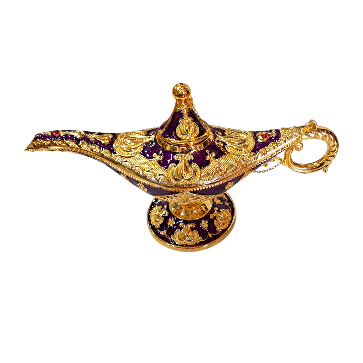 Lámpara de Aladino Malva y Dorada Decorativa | Estilo Árabe Clásico 35x20x11 cm | Ideal para Decoración Mística, Espiritual o Oriental