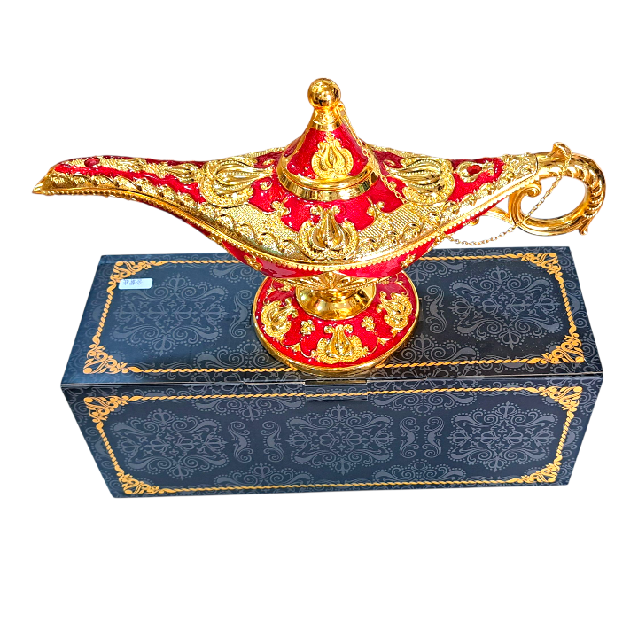 Lámpara de Aladino Roja y Dorada Decorativa | Estilo Árabe Clásico 35x20x11 cm | Ideal para Decoración Mística, Oriental o Temática